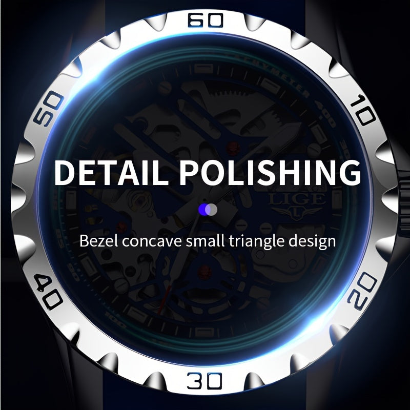 Experience the artistry of mechanical watchmaking with LIGE's automatic movement. Each timepiece is crafted with meticulous attention to detail, featuring a robust zinc alloy case that ensures durability. The mechanical movement provides reliable timekeeping without the need for batteries, while the luminous hands offer perfect visibility in any lighting condition. The date display adds practical functionality to this sophisticated timepiece.