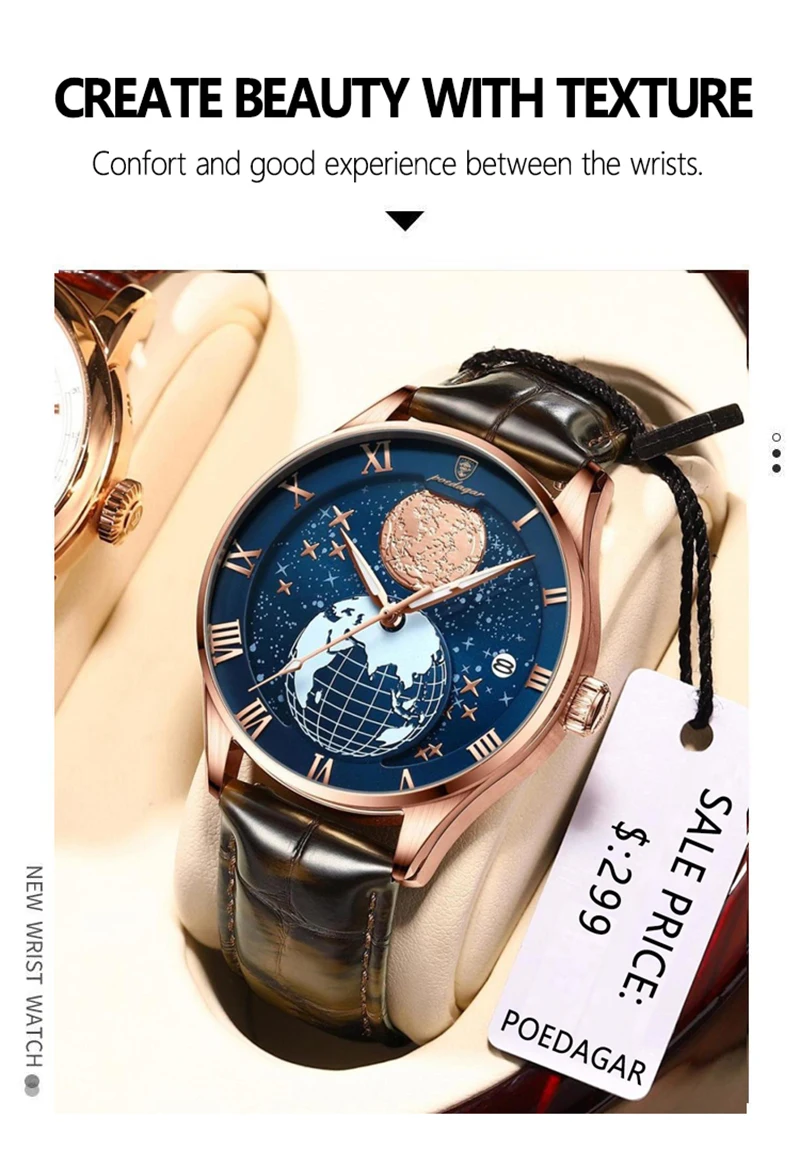 POEDAGAR Marke Leuchtende Uhr Männer Luxus Wasserdicht Ultradünne Kalender Männliche Quarz Armbanduhren Fashion Echtes Leder Uhren