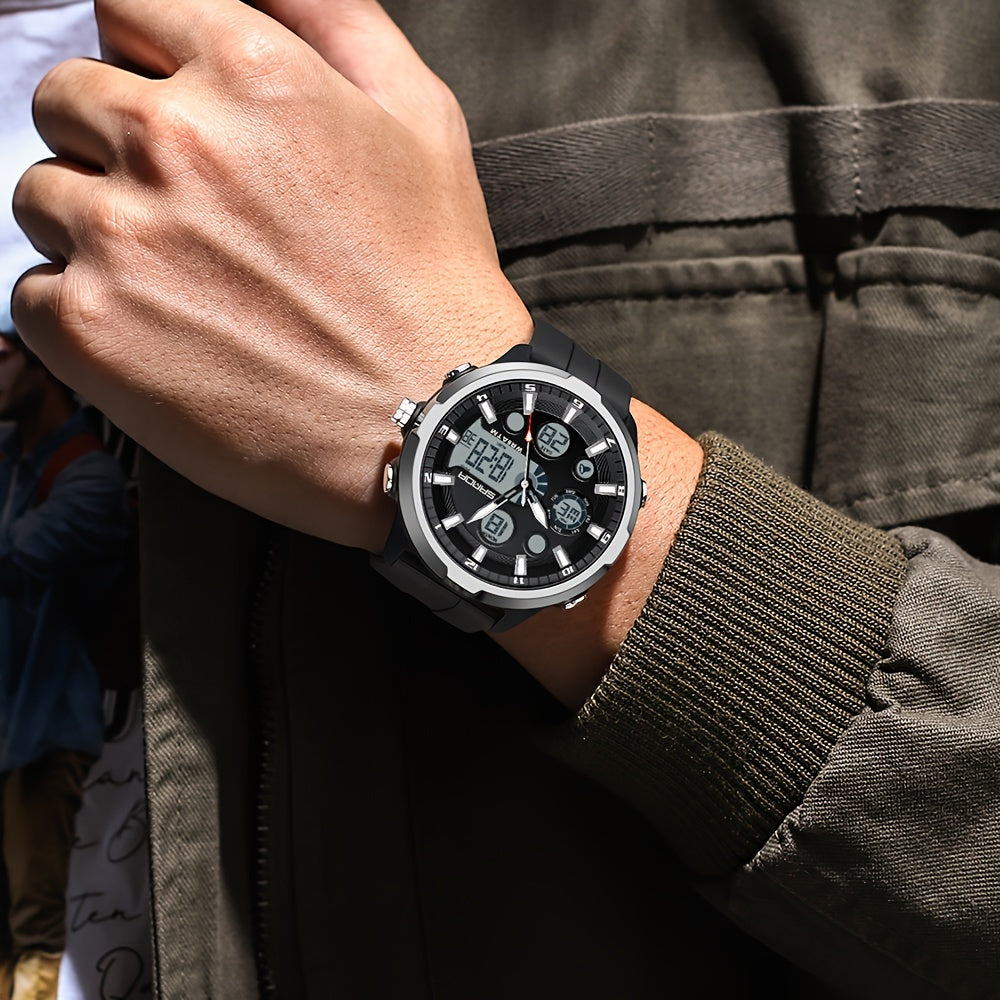 The SANDA Digital Sports Watch is engineered for those who demand more from their timepiece. With its robust zinc alloy case and 5ATM water resistance, this watch stands up to whatever challenge you throw at it. The dual display combines traditional and digital timekeeping, while the multifunctional chronograph helps you track your performance with precision. Whether you're scaling mountains or diving into the pool, this watch keeps up with your active lifestyle.
